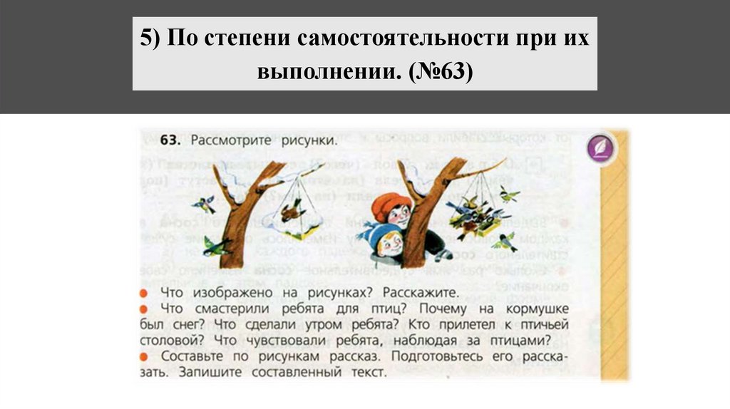 5) По степени самостоятельности при ихвыполнении. (№63)