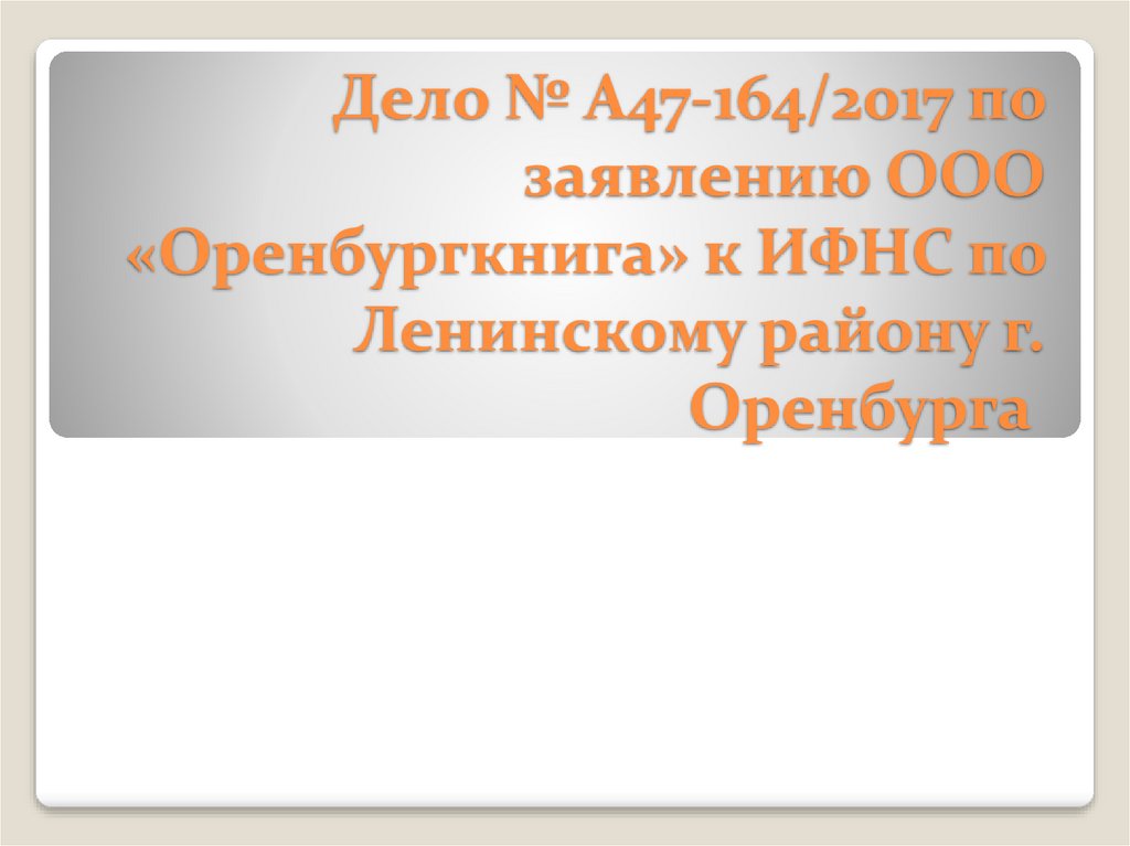 Налоговое интересное дело по заявлению ООО «Оренбургкнига» к ИФНС по Ленинскому району г. Оренбурга