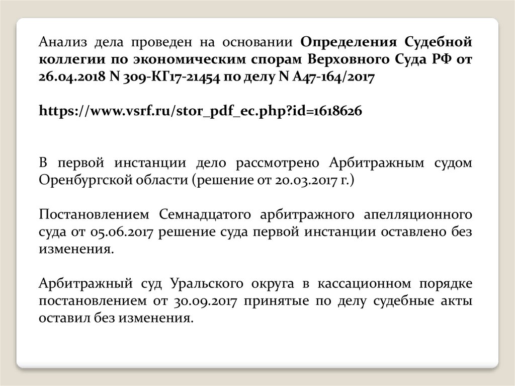 26.04.2018 N 309-КГ17-21454 по делу N А47-164/2017
