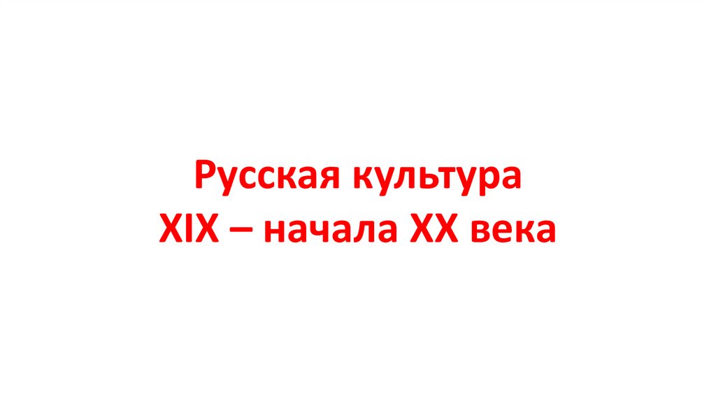 Русская культура XIX – начала ХХ века