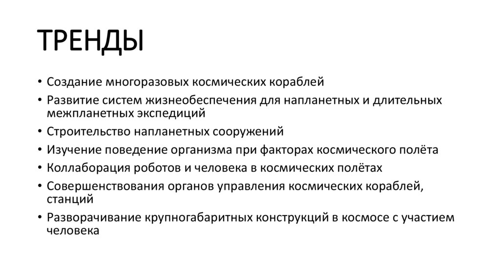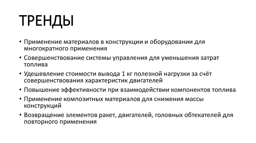 ТРЕНДЫ• Создание многоразовых космических кораблей