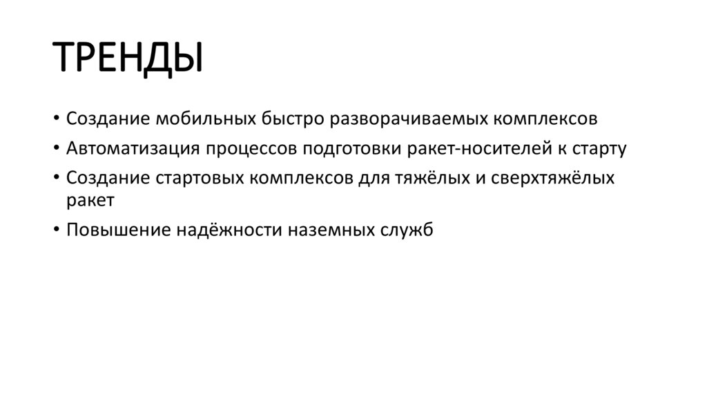 • Автоматизация процессов подготовки ракет-носителей к старту