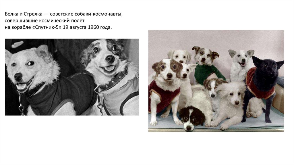 Белка и Стрелка — советские собаки-космонавты,совершившие космический полёт