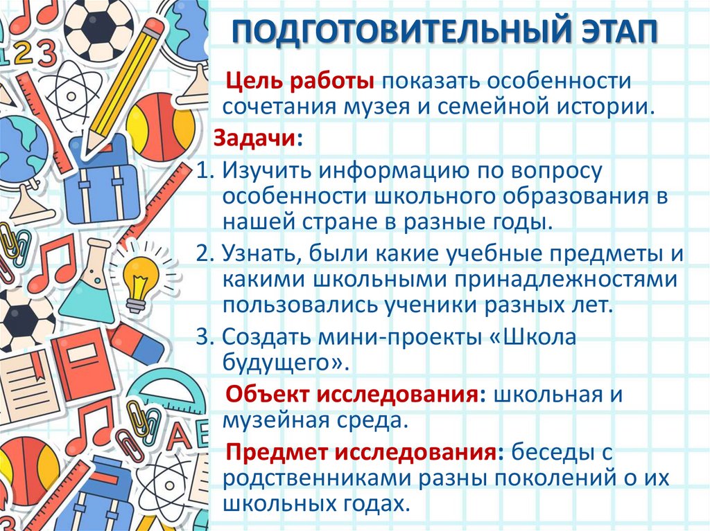 ПОДГОТОВИТЕЛЬНЫЙ ЭТАПЦель работы показать особенности