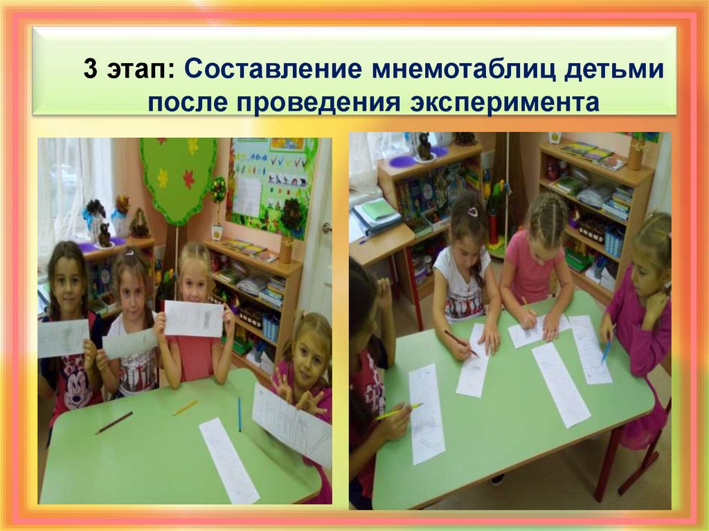3 этап: Составление мнемотаблиц детьмипосле проведения эксперимента