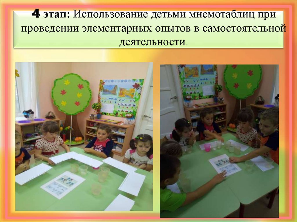 4 этап: Использование детьми мнемотаблиц припроведении элементарных опытов в самостоятельной