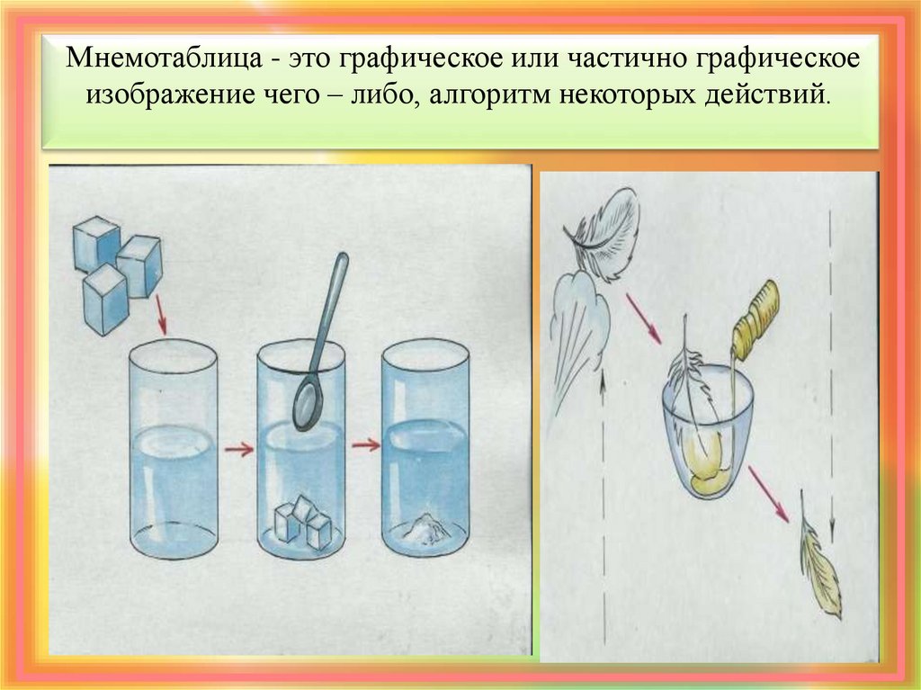Мнемотаблица - это графическое или частично графическоеизображение чего – либо, алгоритм некоторых действий.