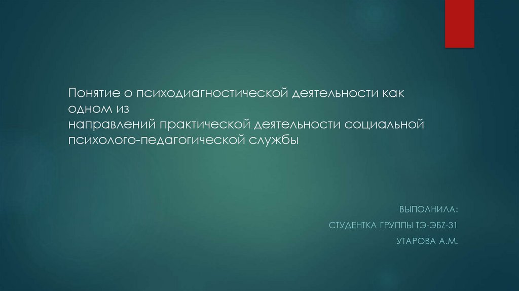 Психодиагностическая деятельность как одно из направлений практической деятельности социальной психолого-педагогической службы