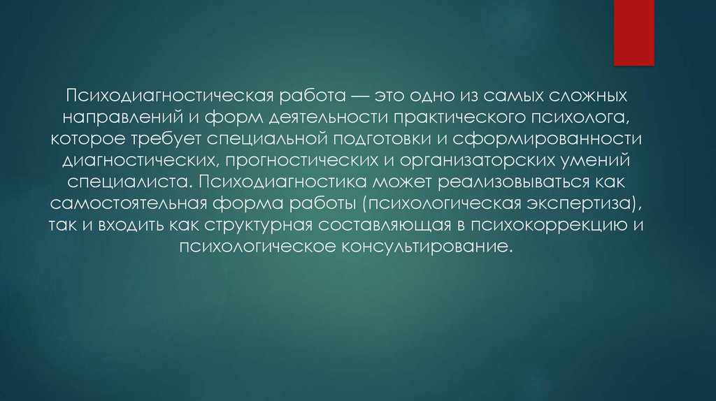 Психодиагностическая работа — это одно из самых сложныхнаправлений и форм деятельности практического психолога,