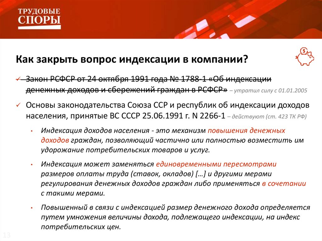 Закон РСФСР от 24 октября 1991 года № 1788-1 «Об индексации