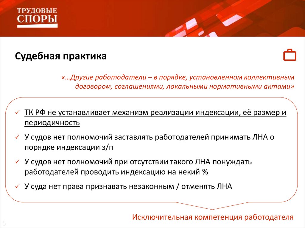 заработной платы. Не снимая с работодателей обязанности по индексации