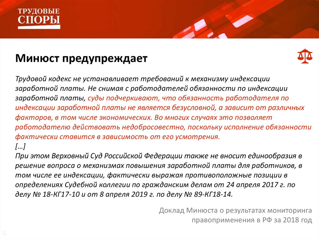 Минюст предупреждаетТрудовой кодекс не устанавливает требований к механизму индексации