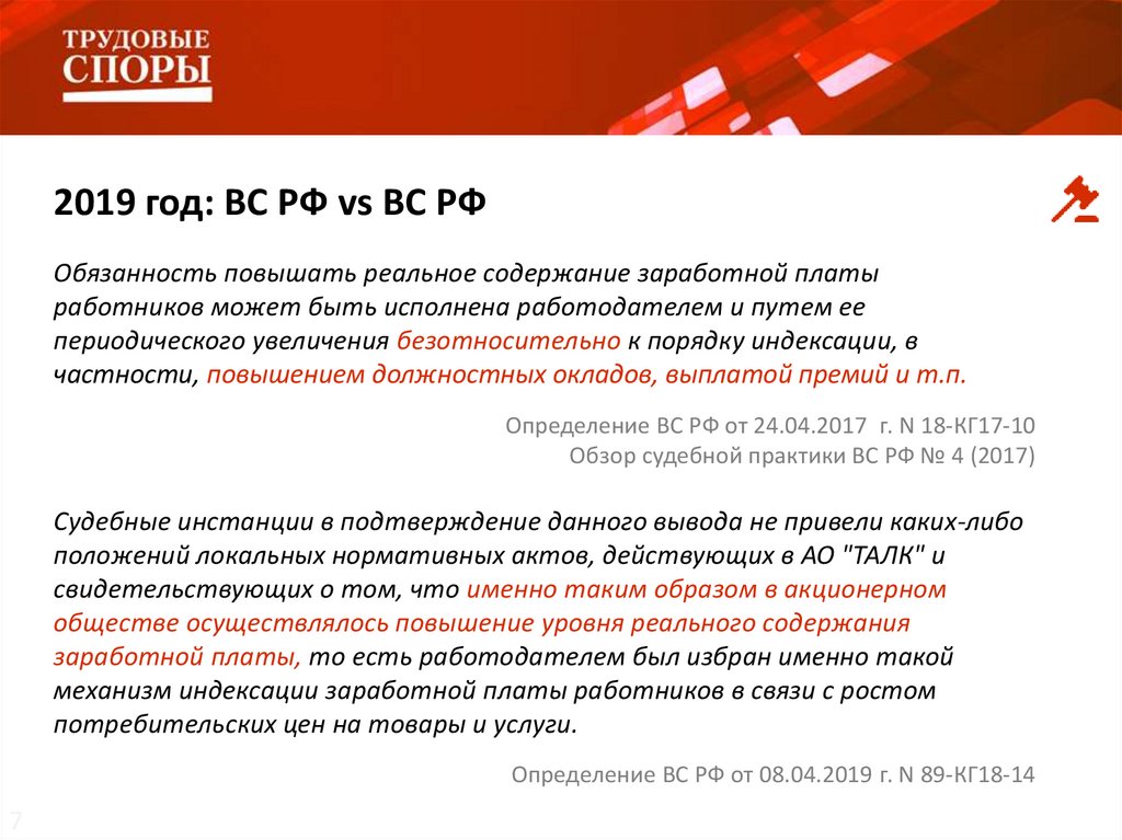 2019 год: ВС РФ vs ВС РФОбязанность повышать реальное содержание заработной платы