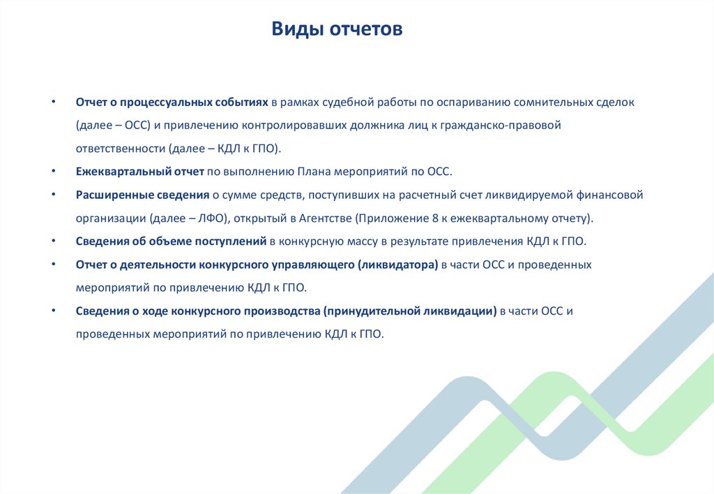 Отчет о деятельности конкурсного управляющего (ликвидатора) в части ОСС и проведенных