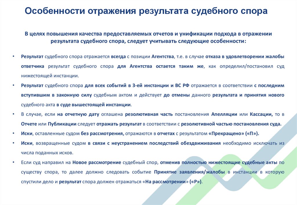 Особенности отражения результата судебного спораВ целях повышения качества предоставляемых отчетов и унификации подхода в отражении