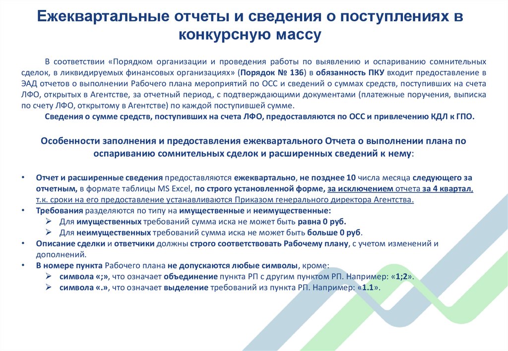 сделок, в ликвидируемых финансовых организациях» (Порядок № 136) в обязанность ПКУ входит предоставление в
