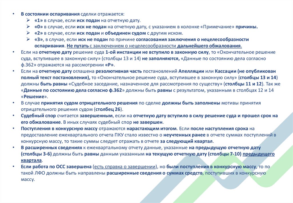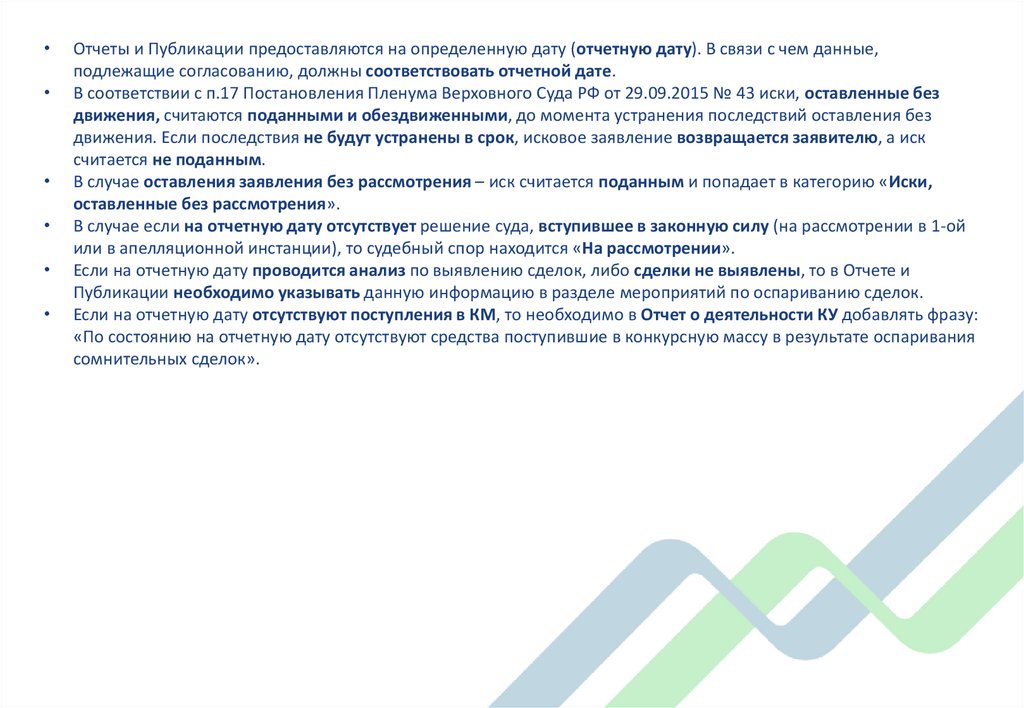 Особенности заполнения сведений в Отчетах о деятельности КУ и Публикациях о ходе КП: