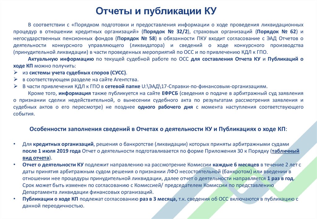 Отчеты и публикации КУВ соответствии с «Порядком подготовки и предоставления информации о ходе проведения ликвидационных