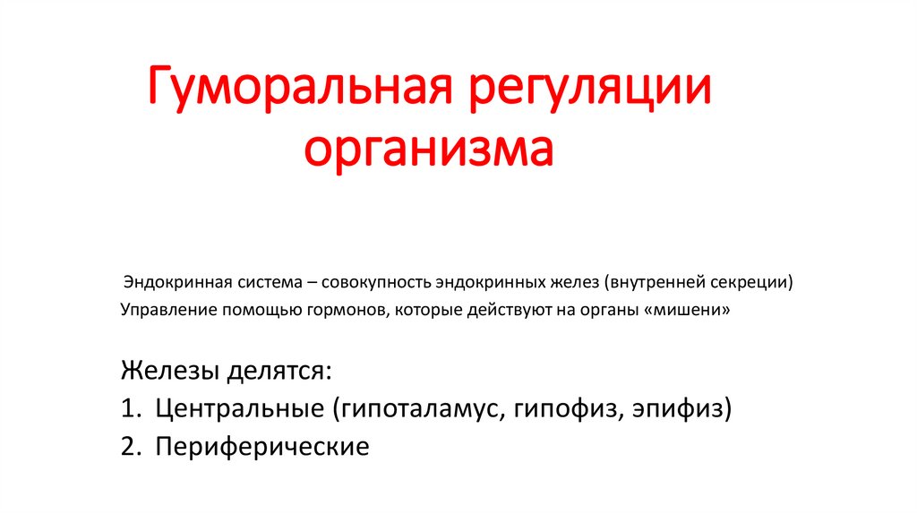 1. Центральные (гипоталамус, гипофиз, эпифиз)