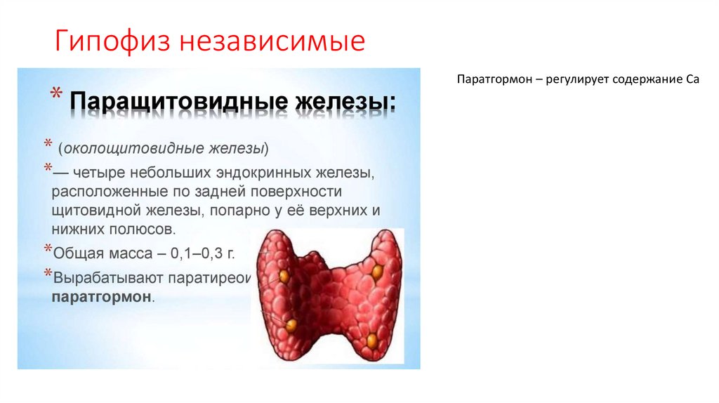 Гипофиз независимыеПаратгормон – регулирует содержание Ca