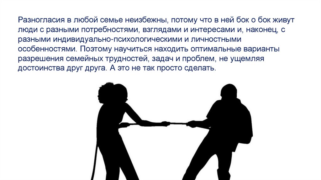 Разногласия в любой семье неизбежны, потому что в ней бок о бок живутлюди с разными потребностями, взглядами и интересами и, наконец, с
