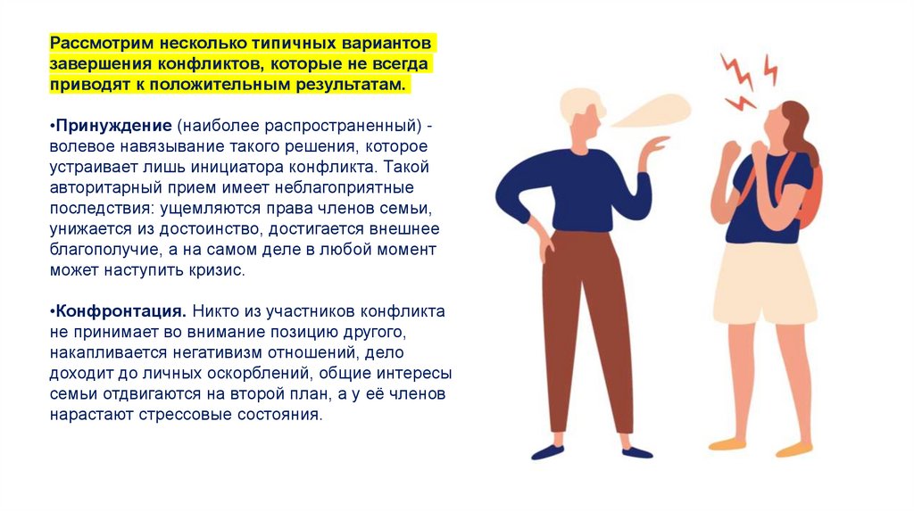 Рассмотрим несколько типичных вариантовзавершения конфликтов, которые не всегда