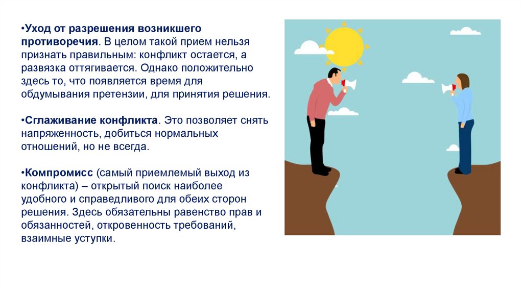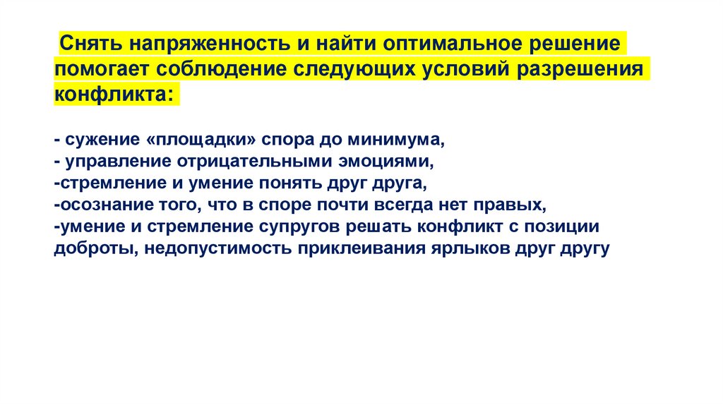 Снять напряженность и найти оптимальное решениепомогает соблюдение следующих условий разрешения