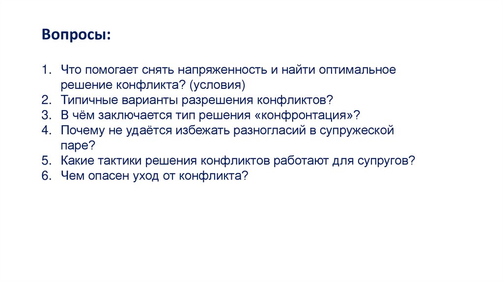Вопросы:1. Что помогает снять напряженность и найти оптимальное