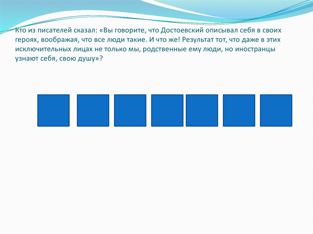 Кто из писателей сказал: «Вы говорите, что Достоевский описывал себя в своихгероях, воображая, что все люди такие. И что же! Результат тот, что даже в этих