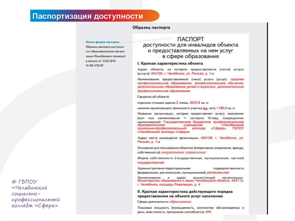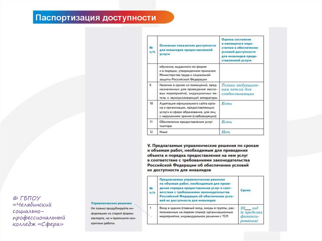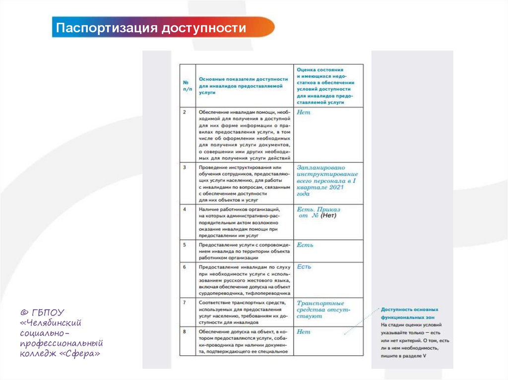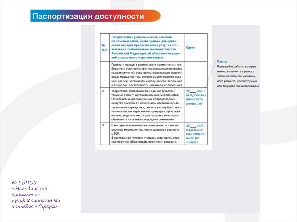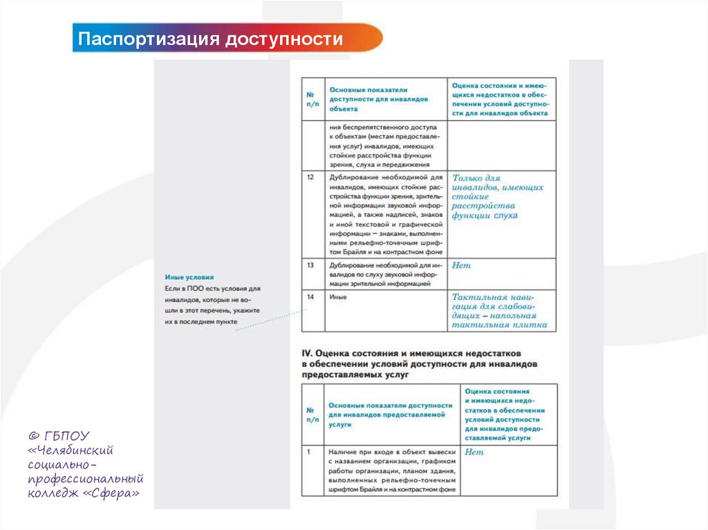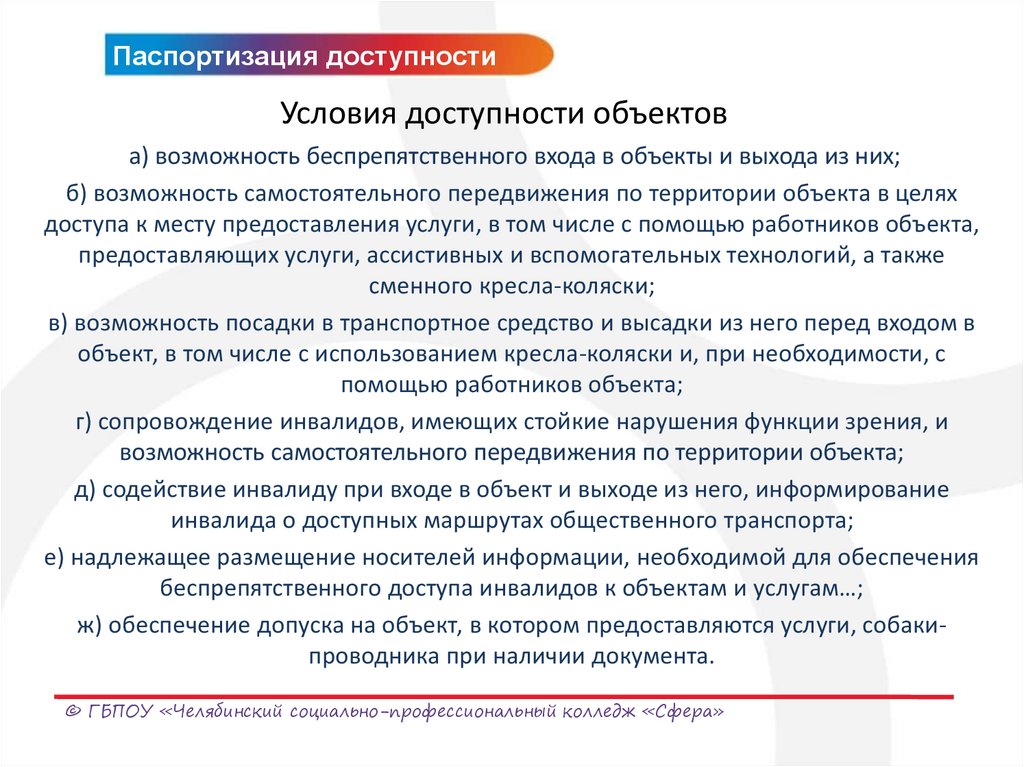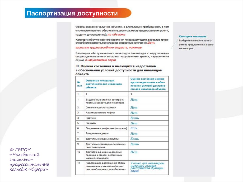 Паспортизация доступностиПроведение обследования и паспортизации объекта и