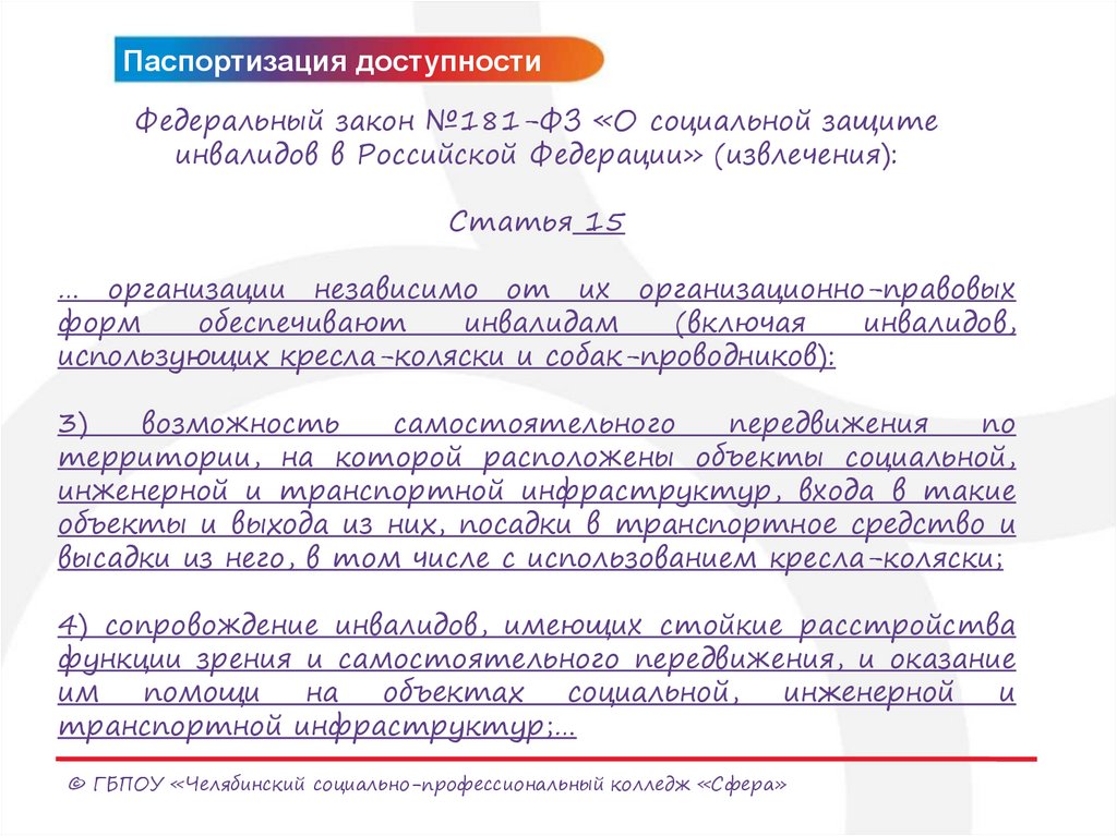 беспрепятственного доступа инвалидов к объектам и услугам…;