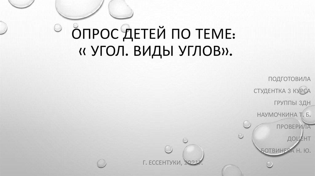 ОПРОС ДЕТЕЙ ПО ТЕМЕ:« УГОЛ. ВИДЫ УГЛОВ».