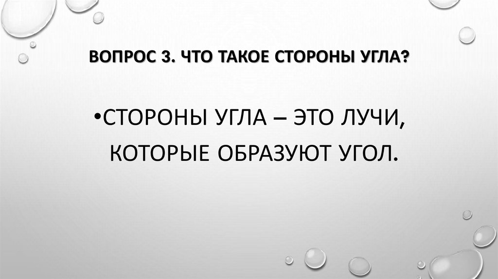 ВОПРОС 3. ЧТО ТАКОЕ СТОРОНЫ УГЛА?•СТОРОНЫ УГЛА – ЭТО ЛУЧИ,