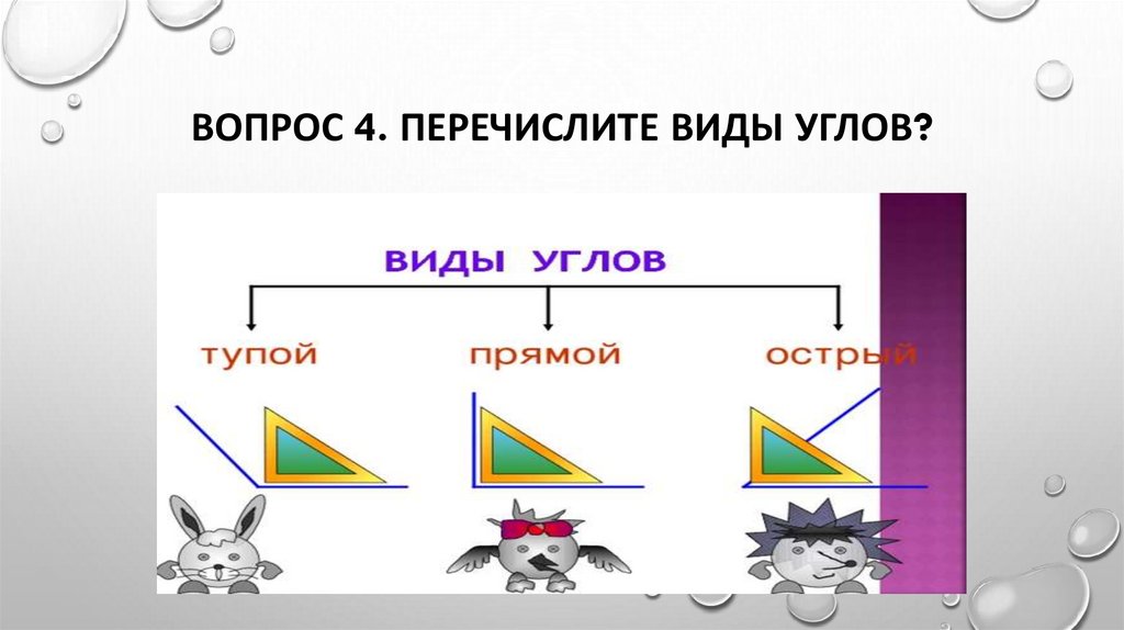 ВОПРОС 4. ПЕРЕЧИСЛИТЕ ВИДЫ УГЛОВ?7.