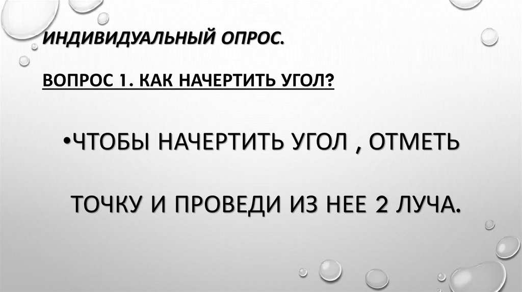 ИНДИВИДУАЛЬНЫЙ ОПРОС.ВОПРОС 1. КАК НАЧЕРТИТЬ УГОЛ?