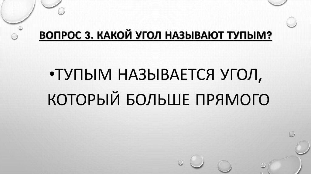 ВОПРОС 3. КАКОЙ УГОЛ НАЗЫВАЮТ ТУПЫМ?•ТУПЫМ НАЗЫВАЕТСЯ УГОЛ,