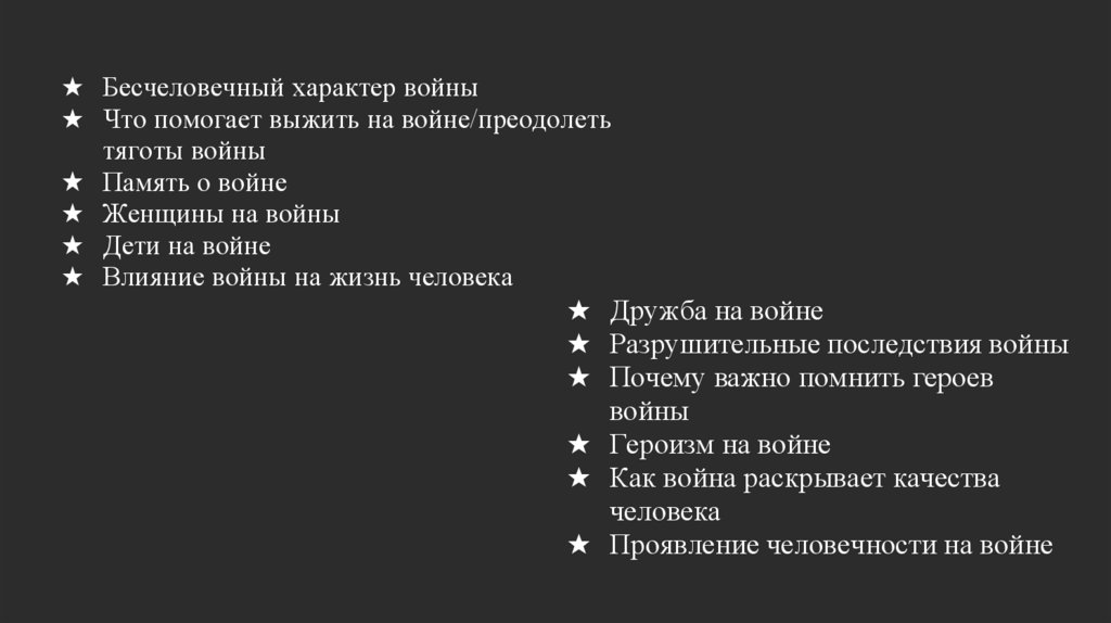 ★ Бесчеловечный характер войны★ Что помогает выжить на войне/преодолеть