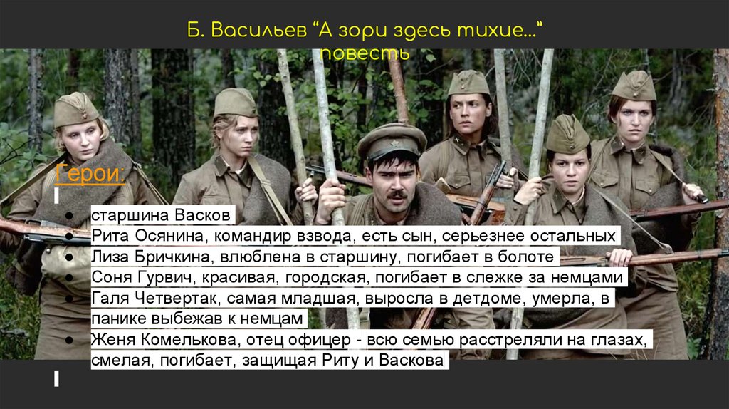 Б. Васильев “А зори здесь тихие…”повесть