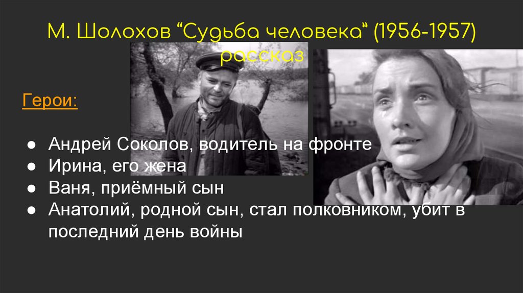 М. Шолохов “Судьба человека” (1956-1957)рассказ