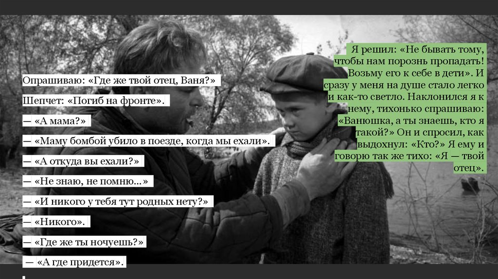 Опрашиваю: «Где же твой отец, Ваня?»Шепчет: «Погиб на фронте».