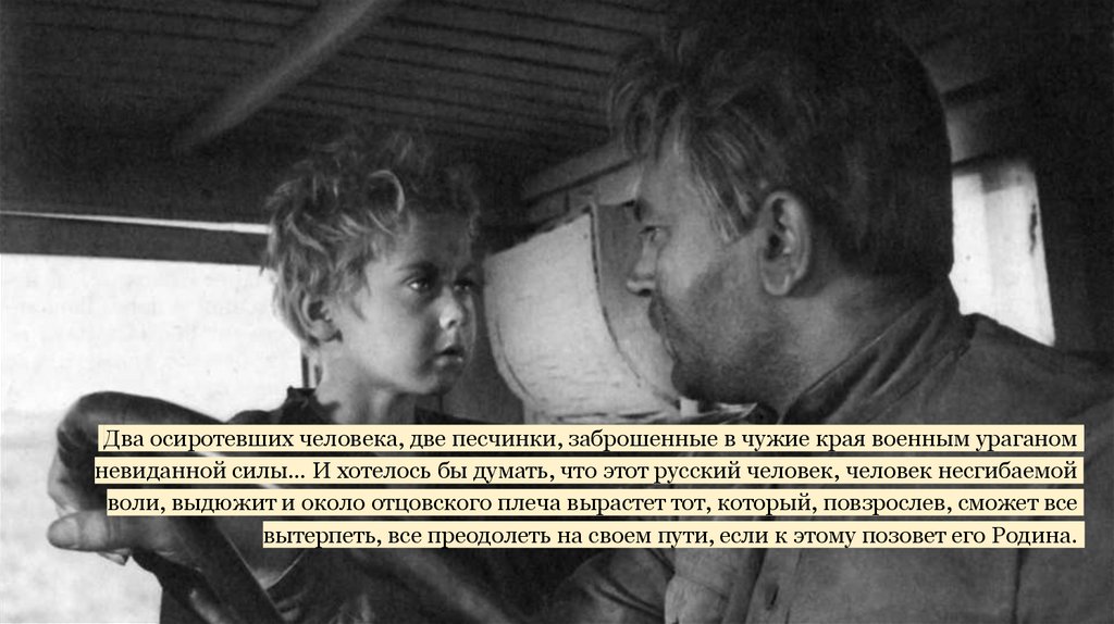 Два осиротевших человека, две песчинки, заброшенные в чужие края военным ураганомневиданной силы… И хотелось бы думать, что этот русский человек, человек несгибаемой