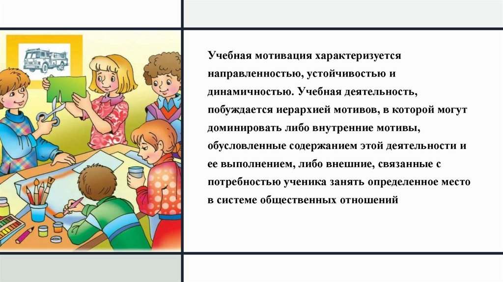 Учебная мотивация характеризуетсянаправленностью, устойчивостью и