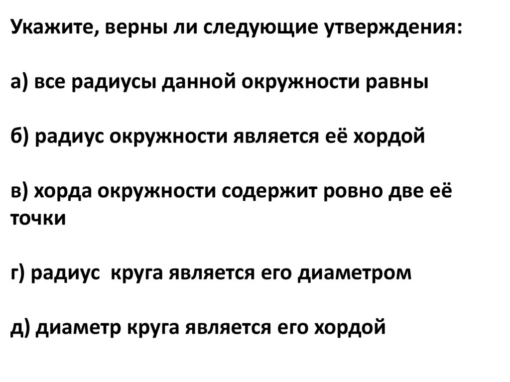 Укажите, верны ли следующие утверждения:а) все радиусы данной окружности равны