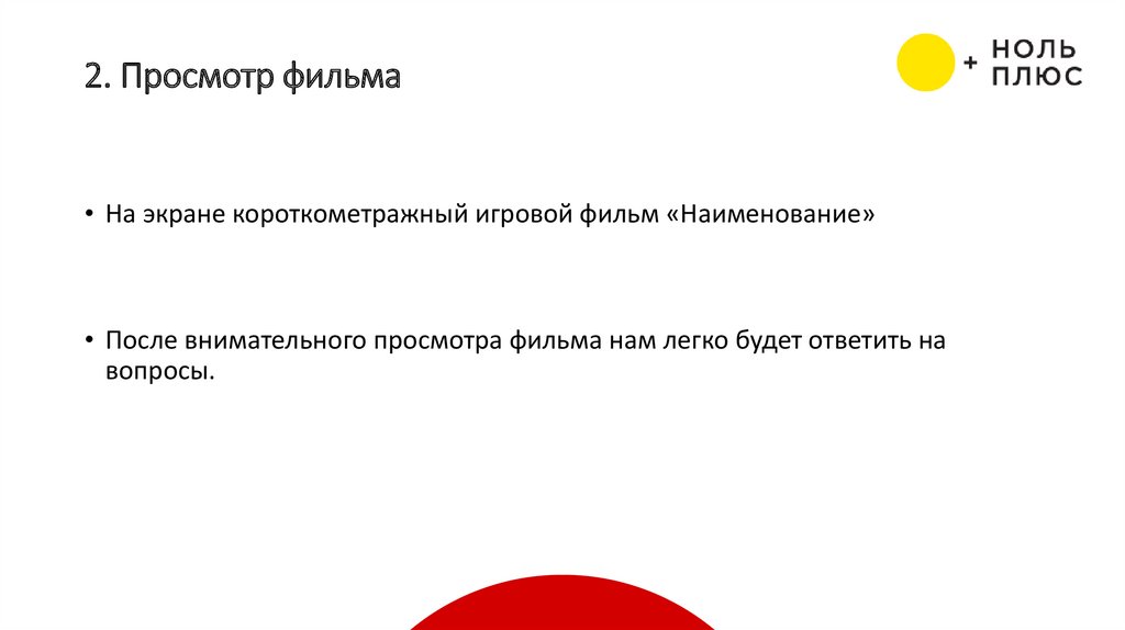 2. Просмотр фильма• На экране короткометражный игровой фильм «Наименование»