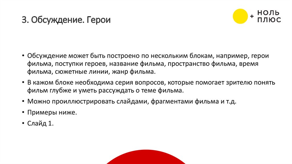 3. Обсуждение. Герои• Обсуждение может быть построено по нескольким блокам, например, герои