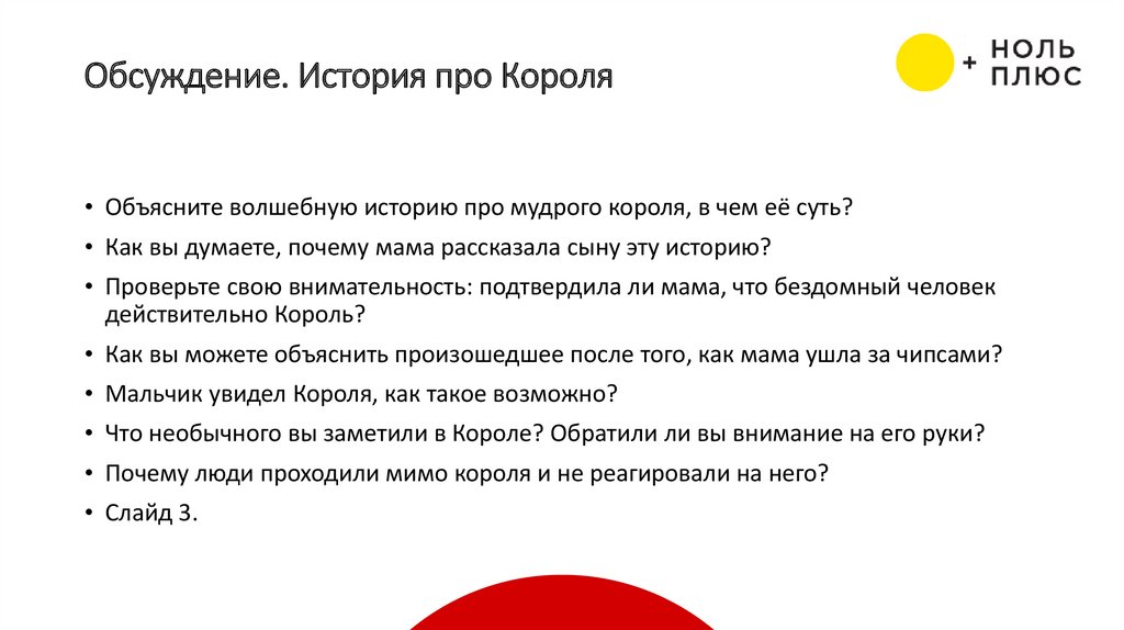 Обсуждение. История про Короля• Объясните волшебную историю про мудрого короля, в чем её суть?
