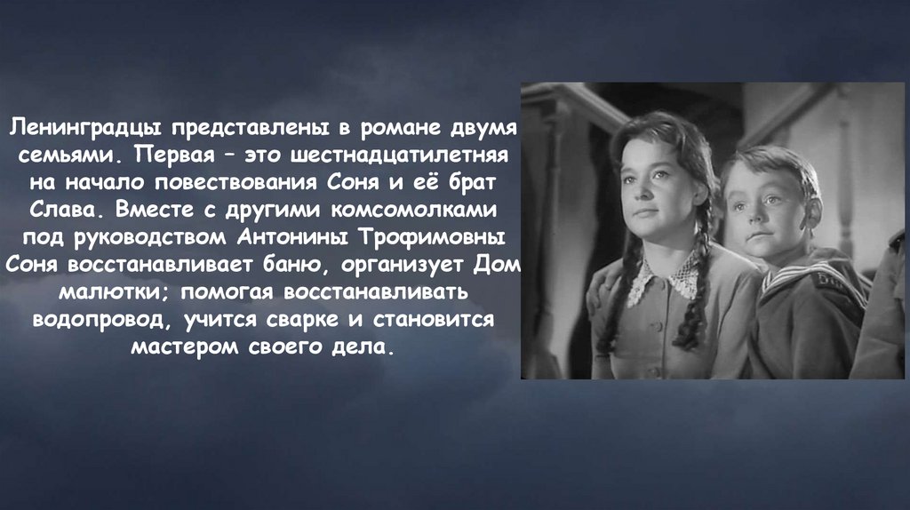 Ленинградцы представлены в романе двумясемьями. Первая – это шестнадцатилетняя