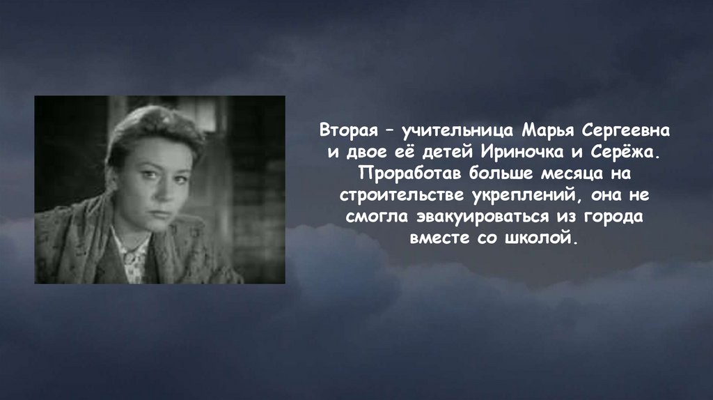 Вторая – учительница Марья Сергеевнаи двое её детей Ириночка и Серёжа.