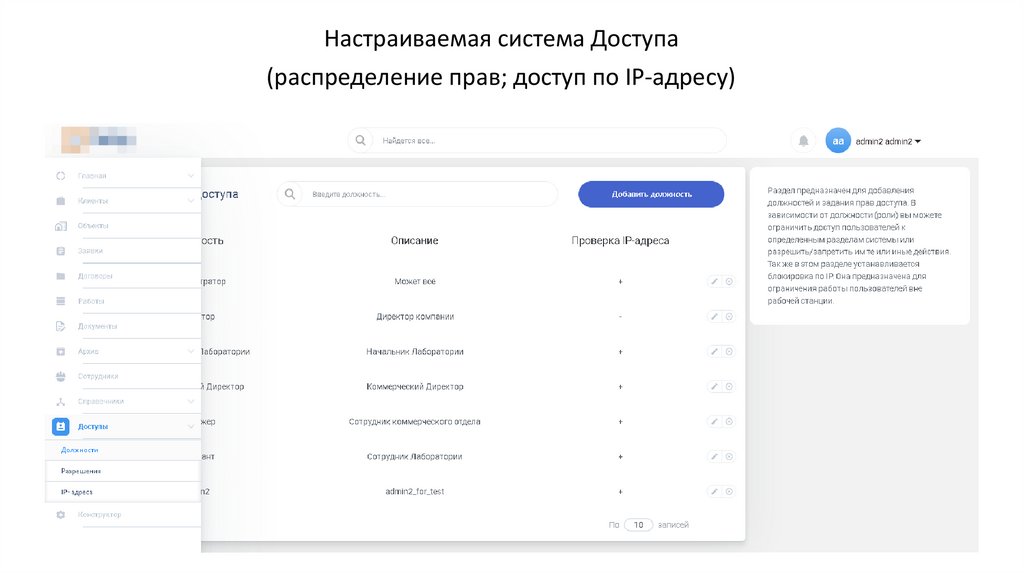 Настраиваемая система Доступа(распределение прав; доступ по IP-адресу)