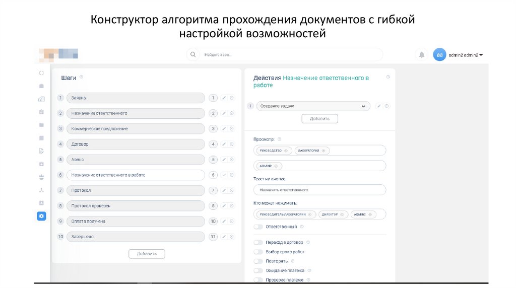 Конструктор алгоритма прохождения документов с гибкойнастройкой возможностей
